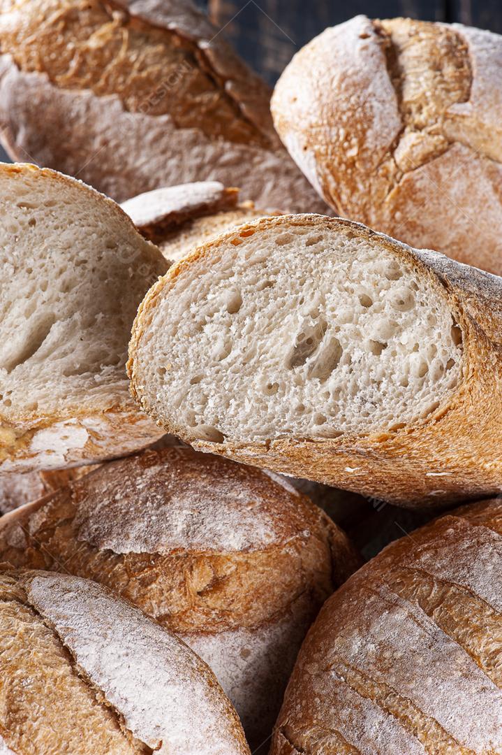 Vários tipos de pães fermentados naturalmente juntos em uma cesta
