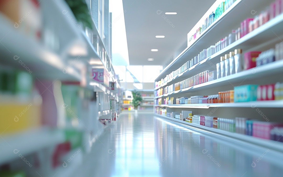 Prateleiras desfocadas em supermercados e lojas de departamentos