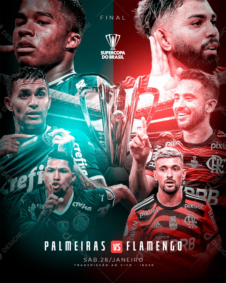 Post Jogo de Futebol Supercopa Palmeiras e Flamengo Social Media PS...