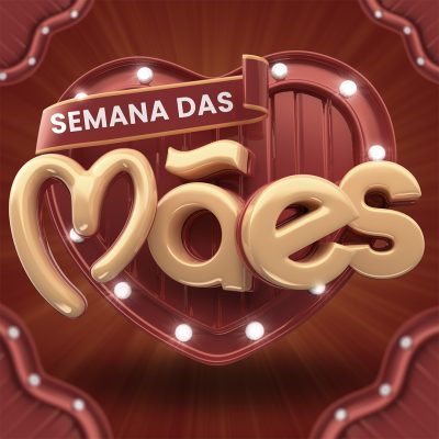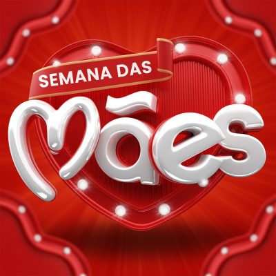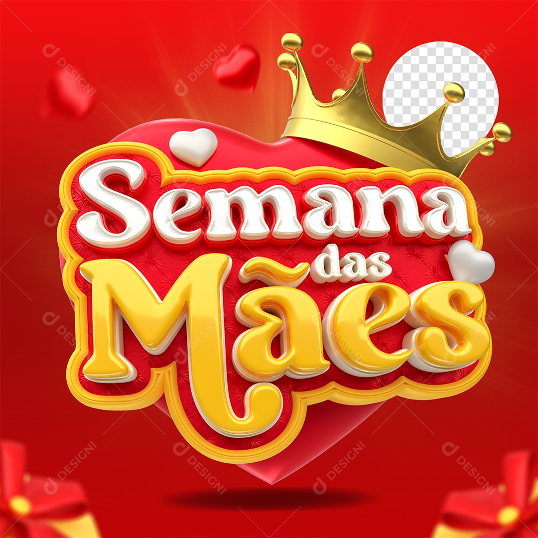 Selo 3D Semana Das Mães Vermelho e Amarelo para Composição PSD