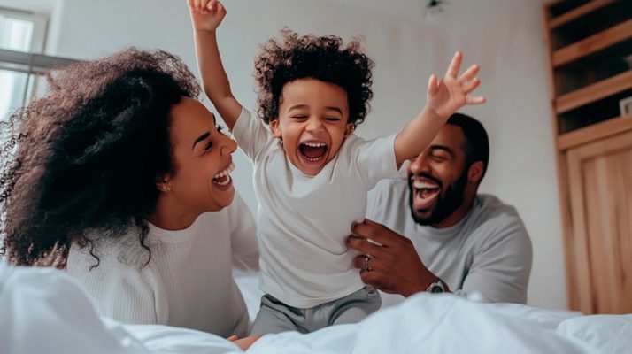 Pai e Mãe brincando com sua filha sobre fundo isolado