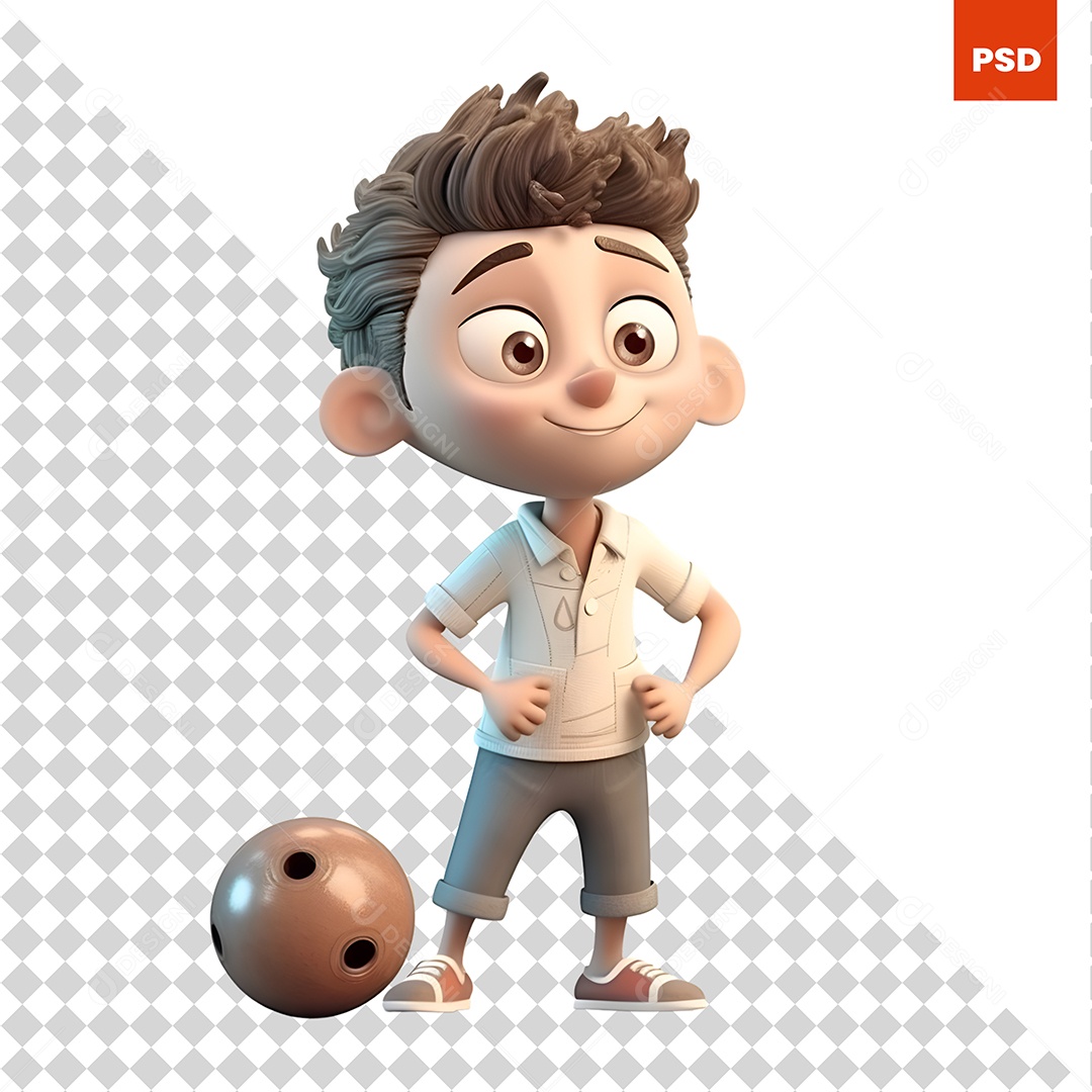 Garoto Com Uma Bola De Boliche Personagem 3D Para Composição PSD