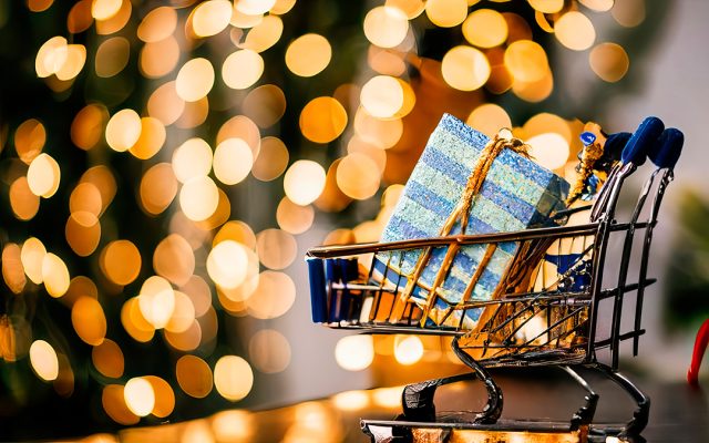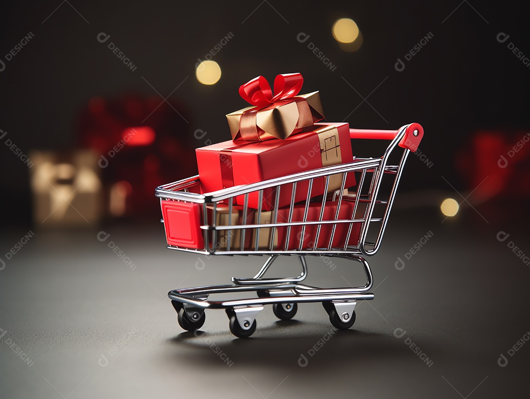 Carrinho de compras com caixas de presente no laptop para o conceito de feriado de sexta-feira negra, compras on-line