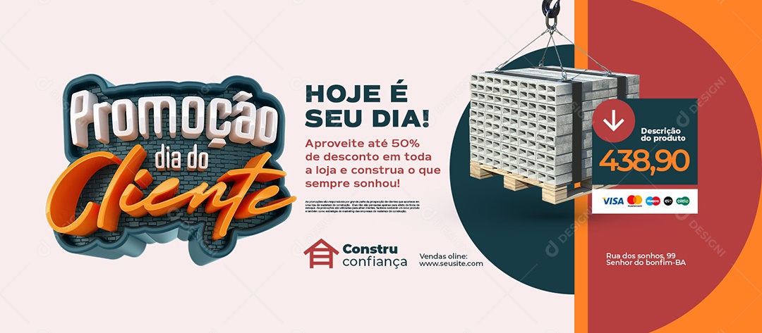 Banner Promoção Dia do Cliente Construção Concreto Hoje é Seu Dia S...