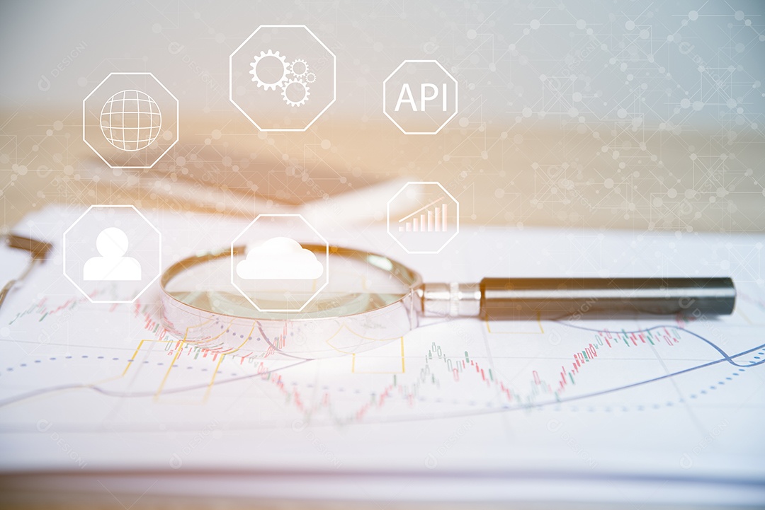 Uma lupa colocada em um gráfico de ações