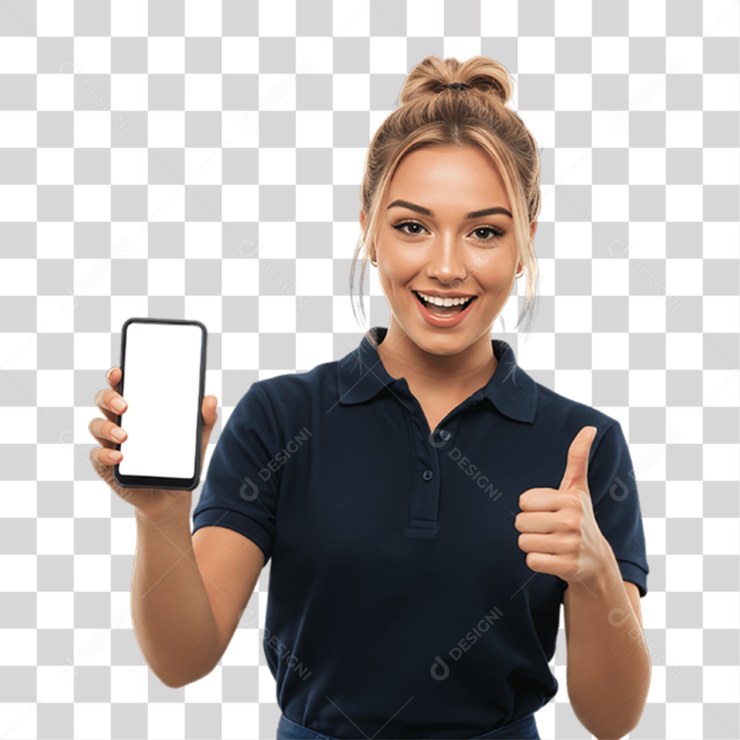 Jovem Mulher com Celular nas Mãos PNG Transparente