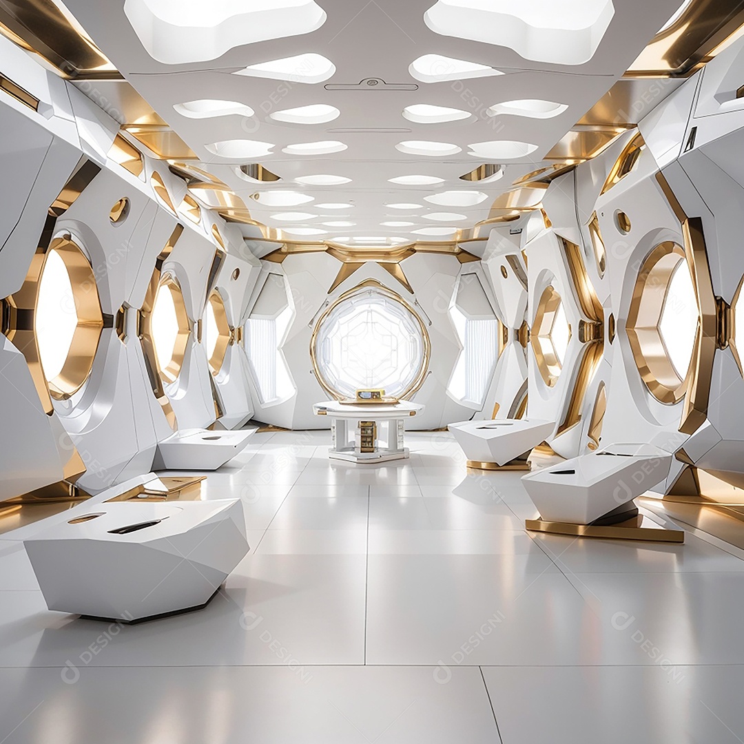 Vislumbrando a sala Futurista Enigma em ouro branco