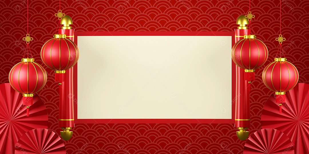 ilustração 3D do banner do ano novo chinês com escritura chinesa, l...