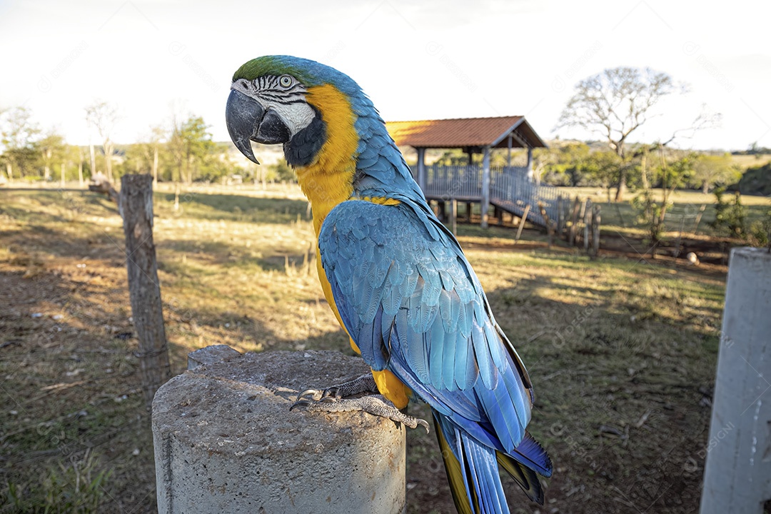 Arara-azul-e-amarela adulta da espécie Ara ararauna