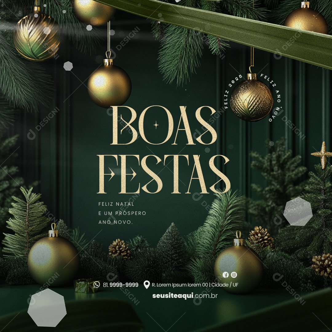 Boas Festas Feliz Natal e Feliz Ano Novo Social Media PSD Editável