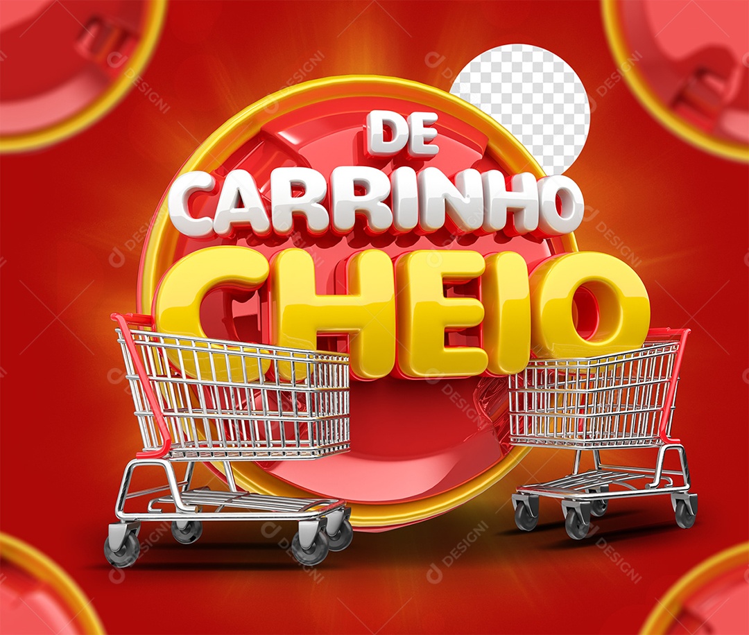 De Carrinho Cheio Selo 3D Vermelho amarelo e Branco para Composição PSD