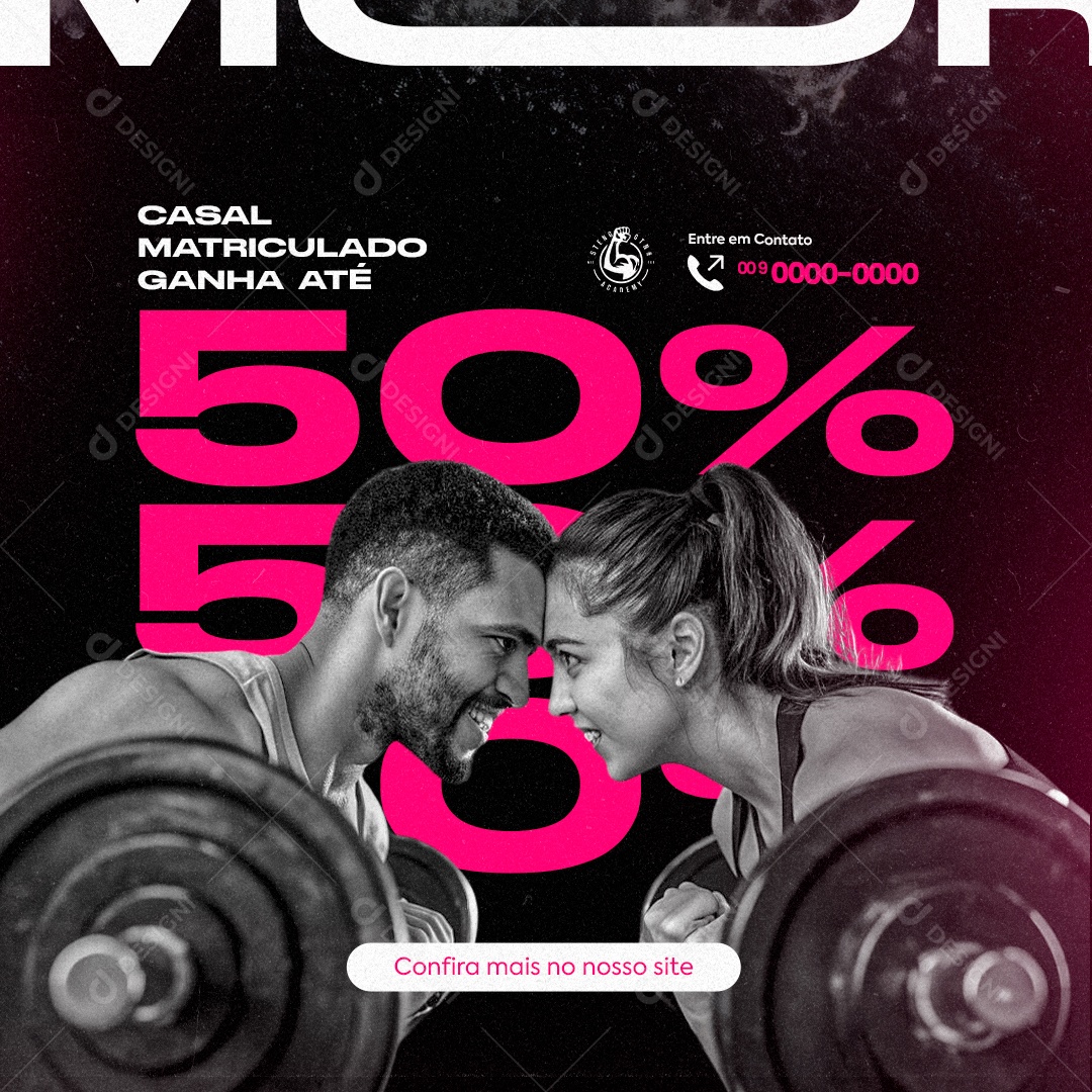 Academia Dia dos Namorados Casal Matriculado Ganha Até 50% Social Media PSD Editável