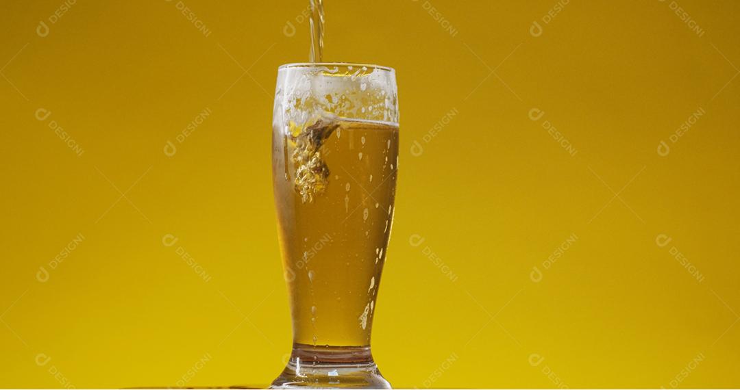Cold Light Beer em um copo com gotas de água. Cerveja artesanal de ...
