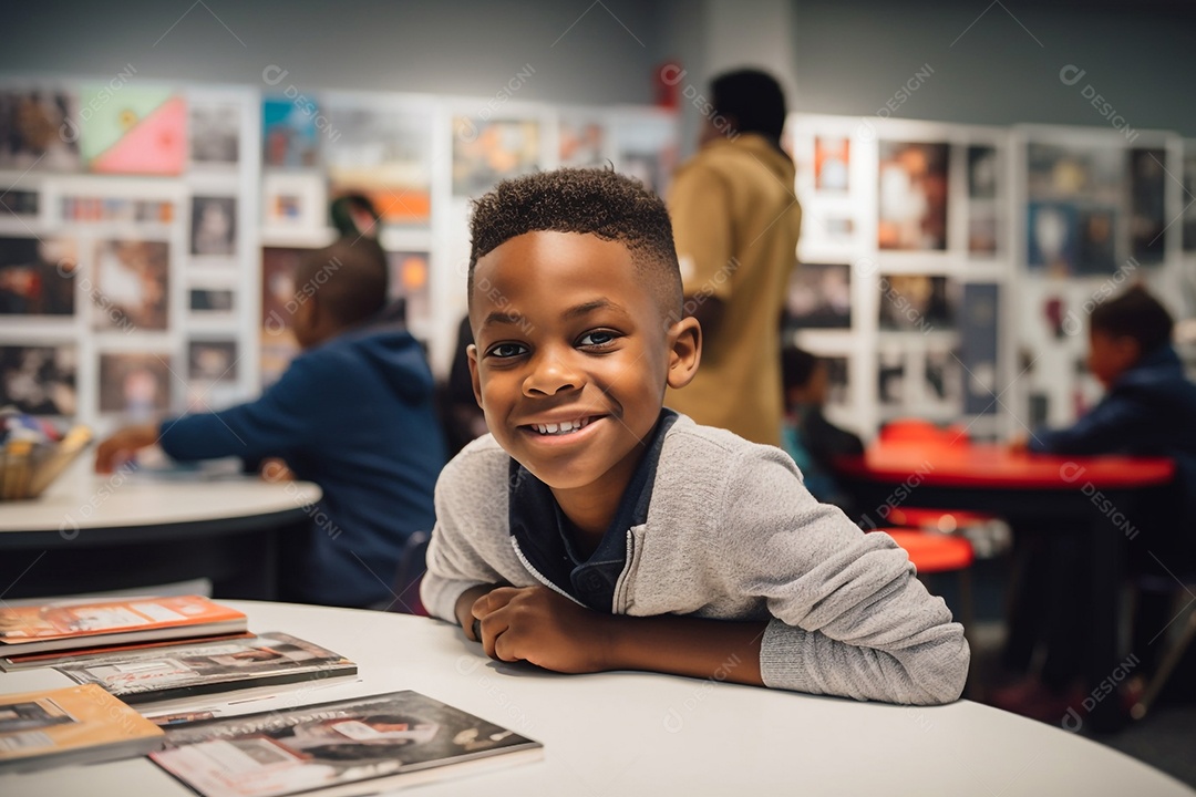 Garoto negro sorridente na escola