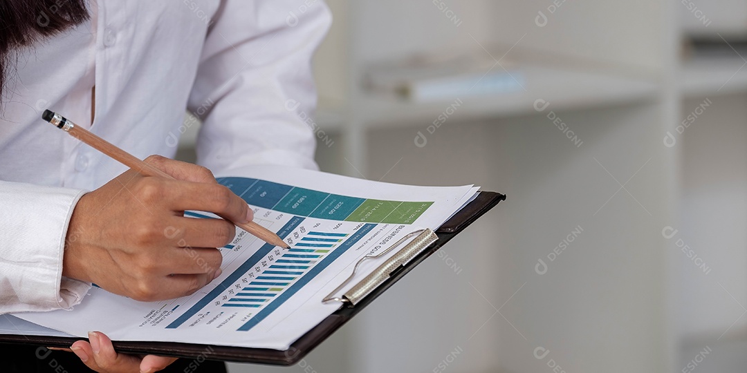 Consultor de investimentos da empresária analisando a declaração de balanço do relatório