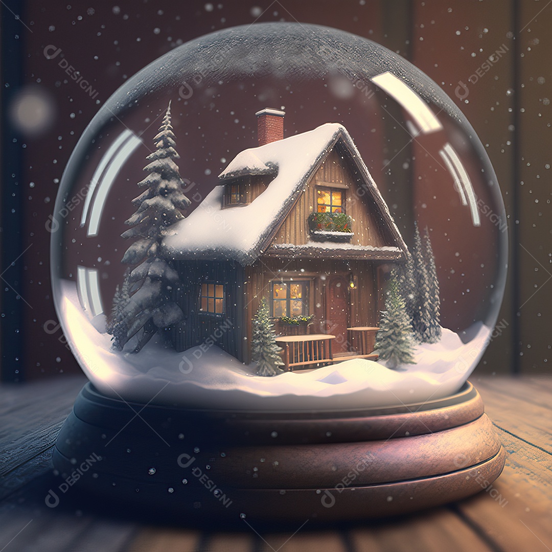 Globo de vidro com a casa do Papai Noel na neve e decoração de Nata...