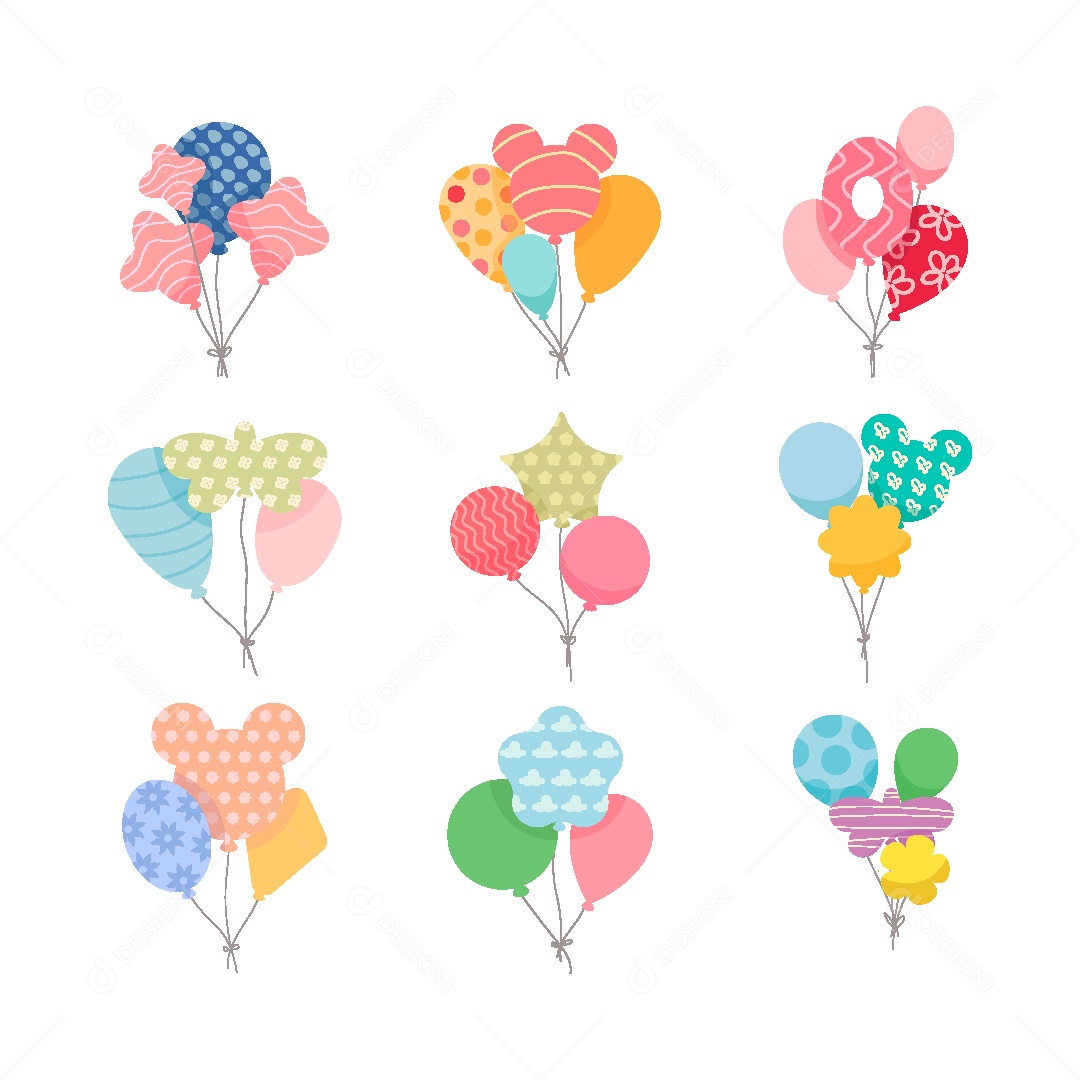 Conjunto de Balões Coloridos Ilustração Vetor EPS