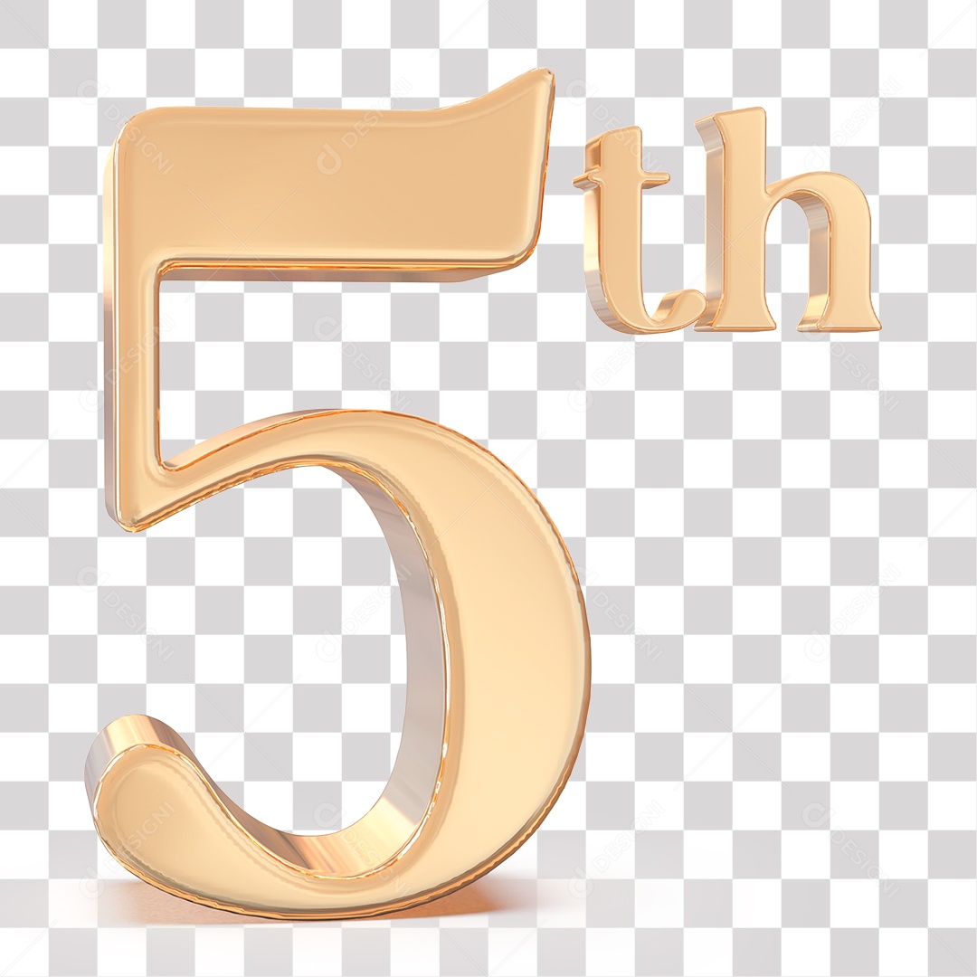 Número 3D 5 quinto Lugar Dourado para Composição PNG Transparente S...