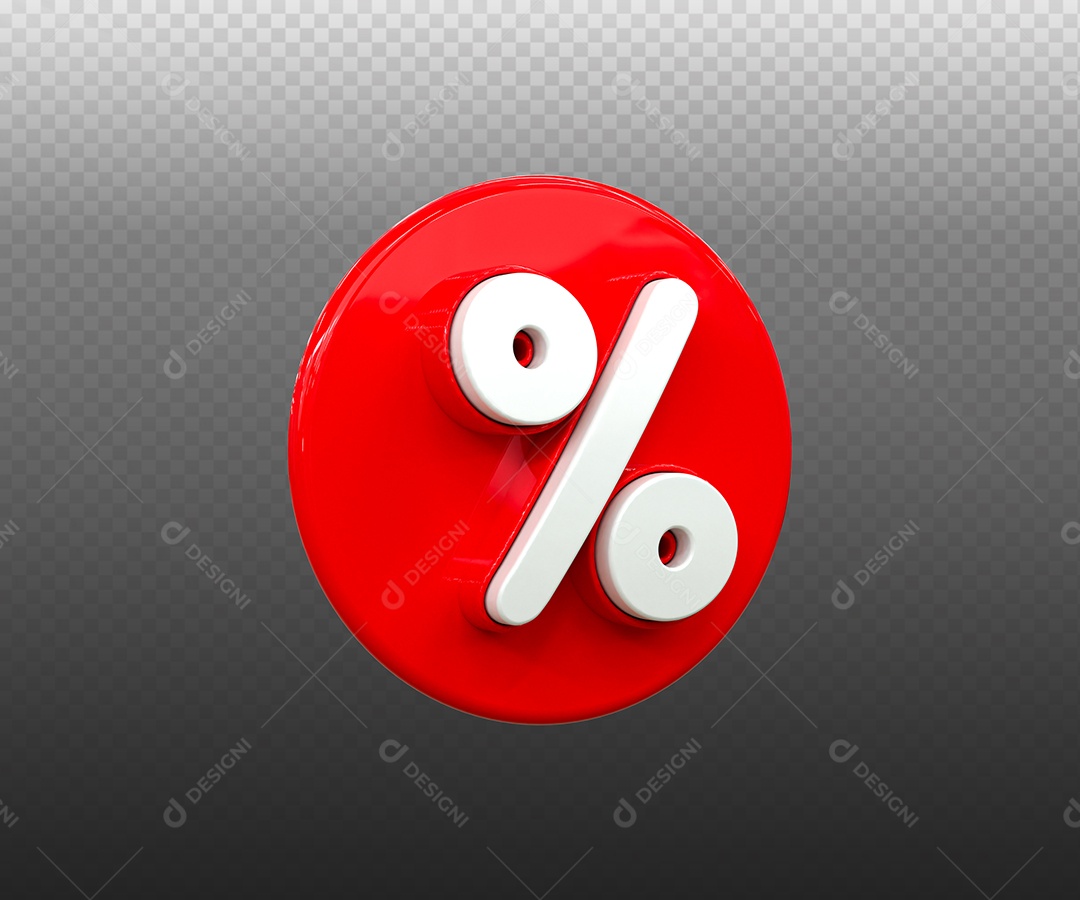 Símbolo de Porcentagem Elemento 3D Vermelho e Branco para Composição PSD