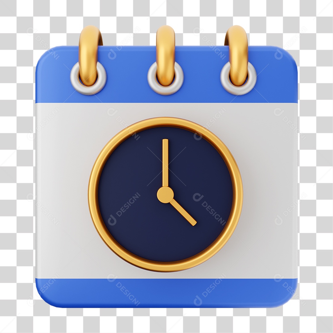 Elemento 3D Calendário Relógio para Composição PNG Transparente