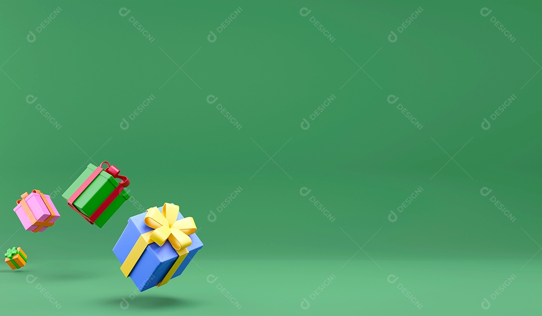 Caixa de natal de renderização 3D em fundo verde, ilustração 3d sur...
