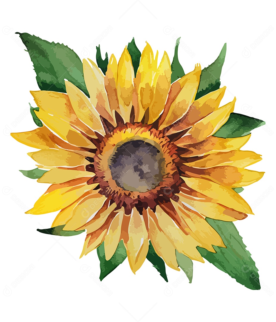 Desenho De Girassol Flor De Aquarela Desenhada Á Mão Vetor EPS