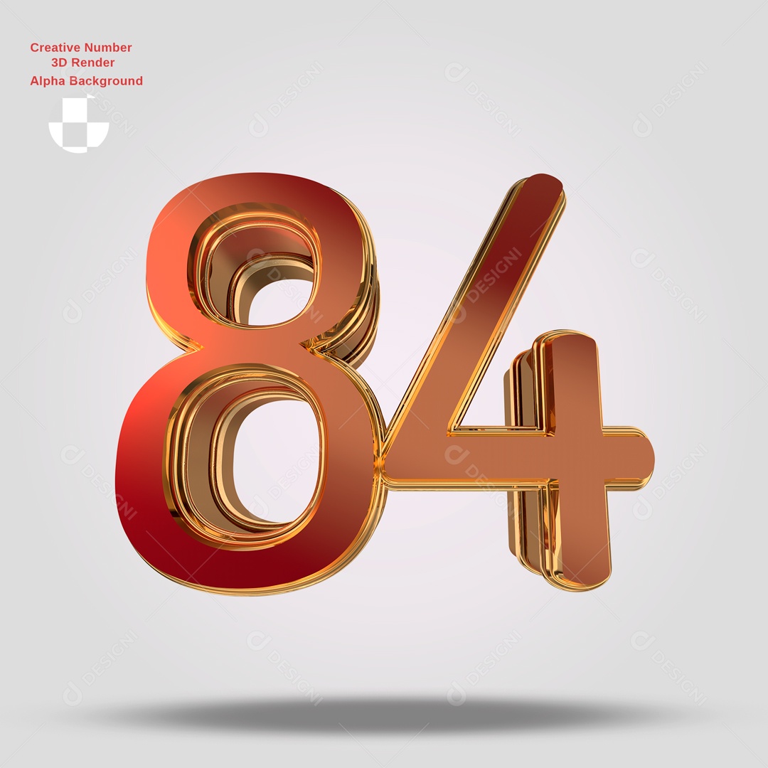 Número 3D 84 Vermelho e Dourado Para Composição PSD