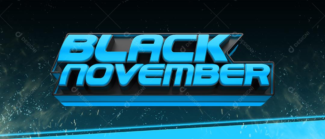Black November Selo 3D Azul Para Composição PNG Transparente