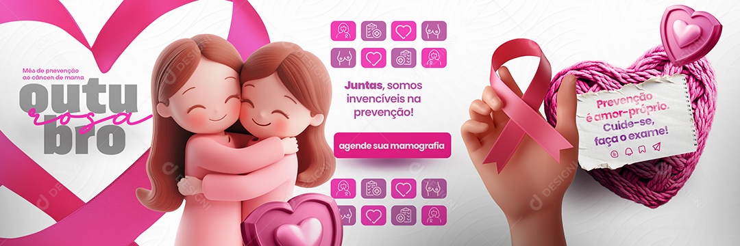 Carrossel Outubro Rosa Campanha de Prevenção Social Media PSD Editável