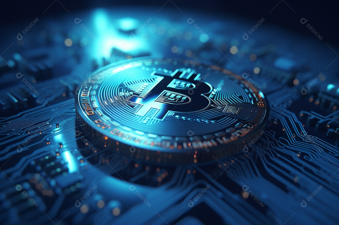 Criptografia digital de moeda criptográfica de blockchain de ícone Bitcoin, conceito de plano de fundo de conexões de rede global de tecnologia.