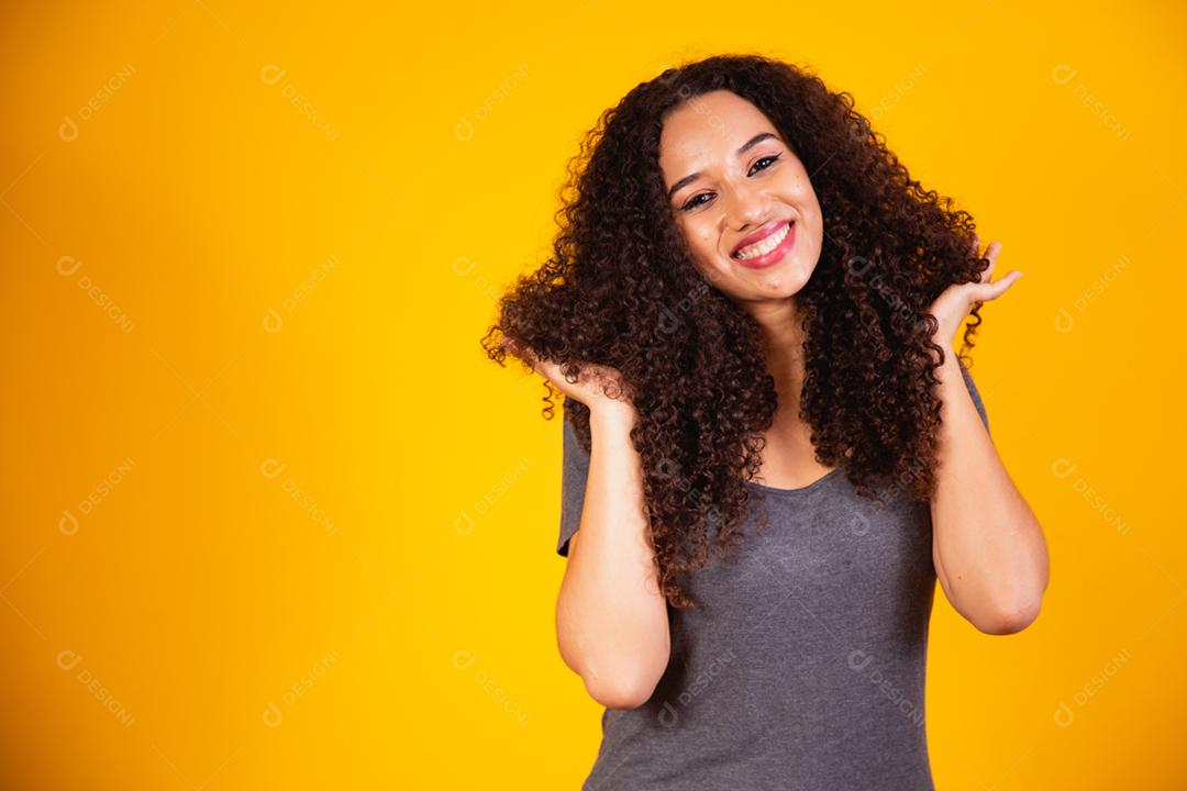 Retrato da beleza da mulher afro-americana com penteado afro