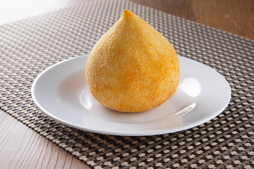 Coxinha, petisco tradicional da culinária brasileira recheado com frango.