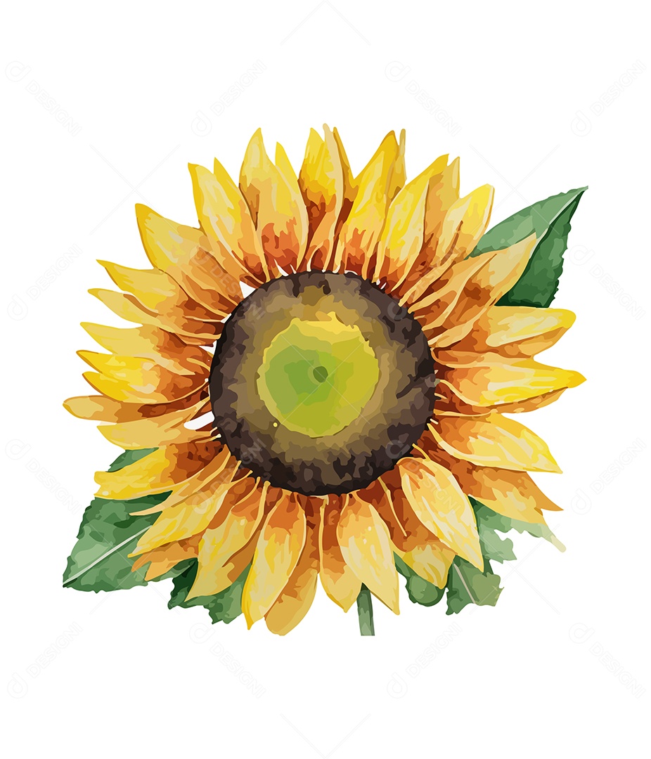 Desenho De Girassol Flor De Aquarela Desenhada Á Mão Vetor EPS