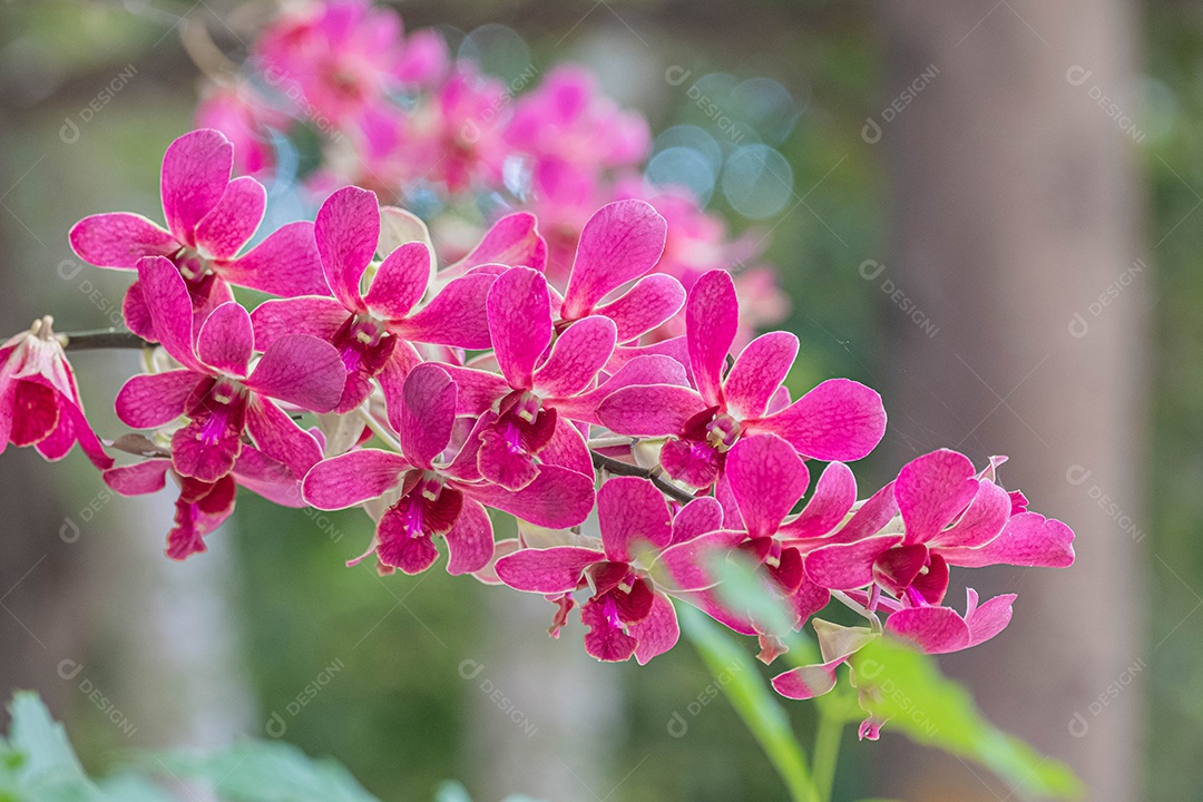 Flor roxa da orquídea no jardim de orquídeas no inverno. Flor de orquídea para design de beleza e agricultura de cartão postal