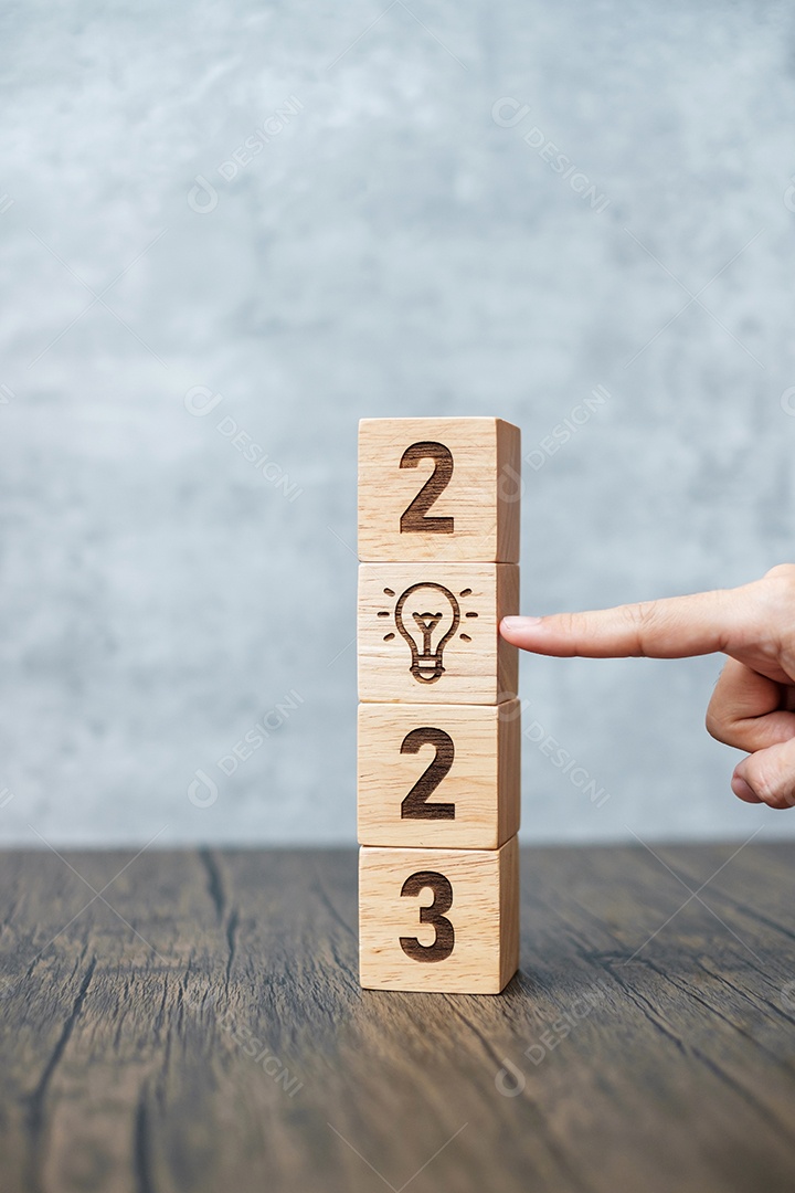Bloco de 2023 com ícone de lâmpada. Ideia de negócio, criativo, pen...