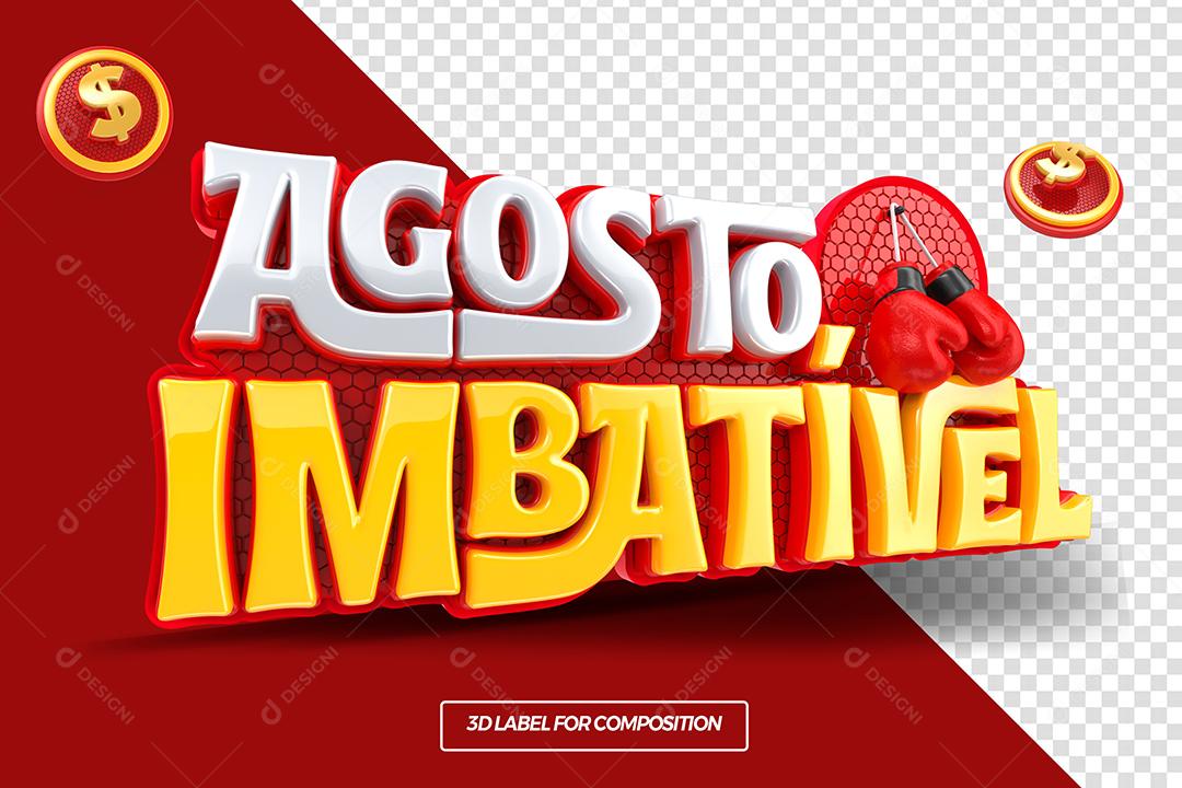 Selo 3D Agosto Imbatível Vermelho para Composição PSD