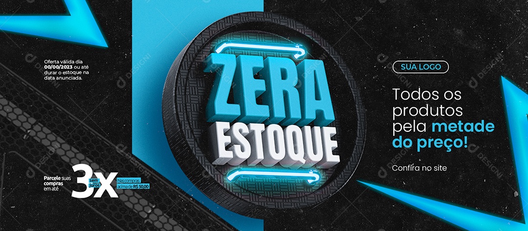 Banner Zera Estoque Todos os Produtos pela Metade do Preço Social Media PSD Editável