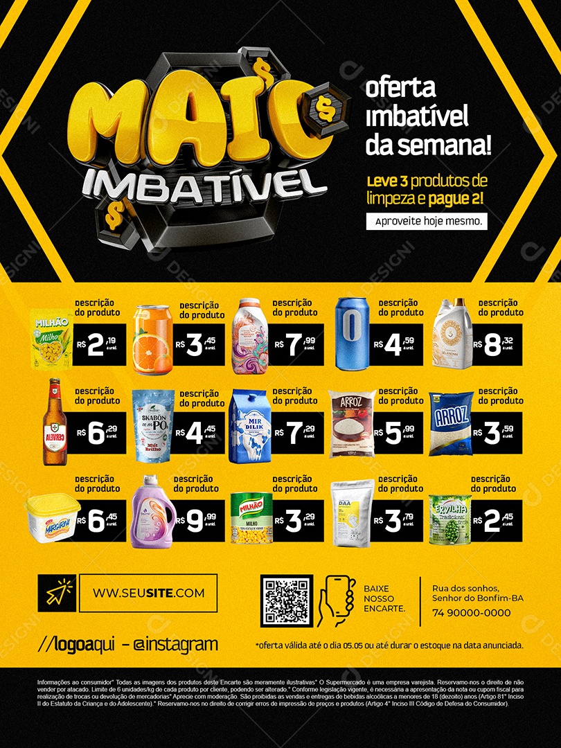 Supermercado Maio Imbatível Encarte Milho Cerveja Ervilha Social Media PSD Editável