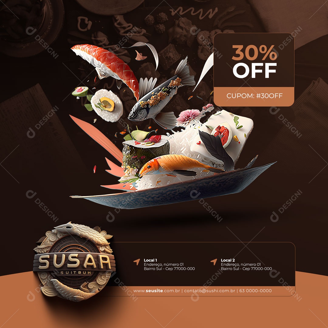 Restaurante Comida Japonesa Sushi 30% Off Social Media PSD Editável