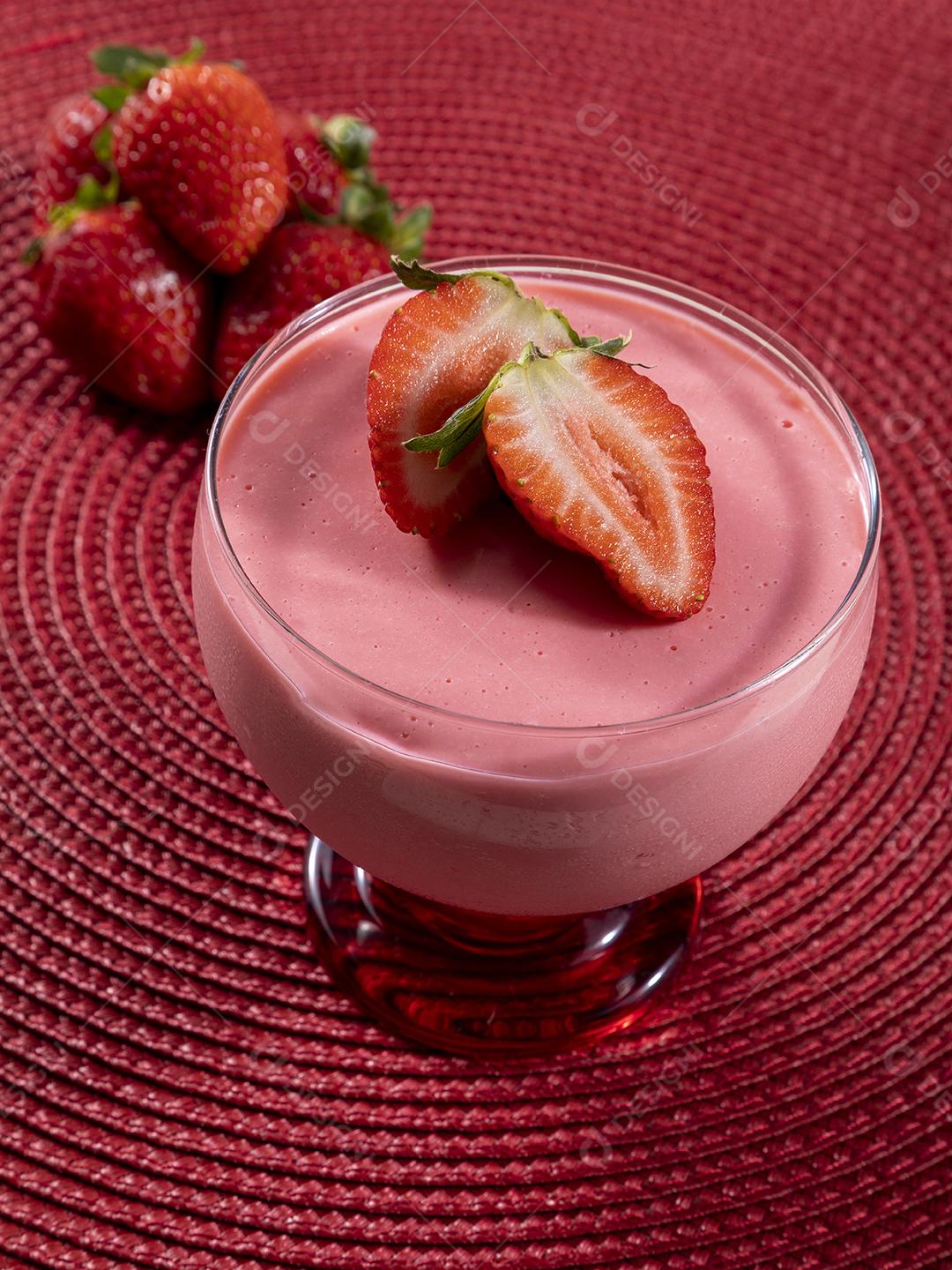 Mousse de morango saborosa em vidro com morango por cima Imagem JPG
