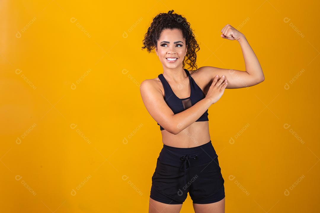 Imagem de uma garota afro-americana forte e confiante flexionando o braço