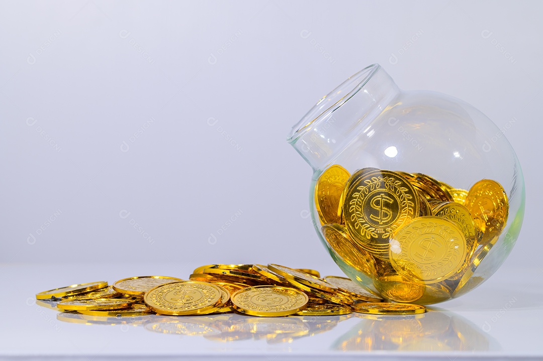 Conceito de economizar dinheiro, pilha de dinheiro cena de fundo branco