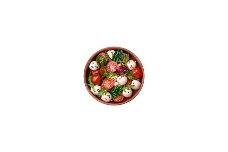 Deliciosa salada de legumes e verduras sobre fundo isolado