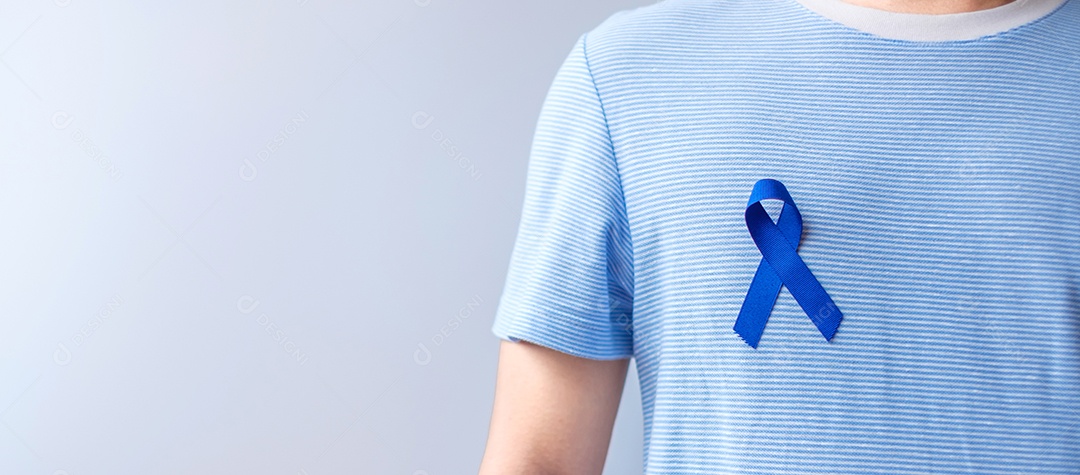 Mês de conscientização do câncer colorretal de março, mulher segurando azul escuro