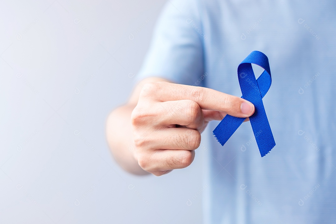 Mês de conscientização do câncer colorretal de março, mulher segurando azul escuro