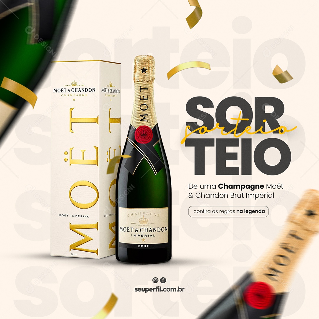 Sorteio de Uma Champagne Moet & Chandon Brut Impérial Ano Novo Social Media PSD Editável