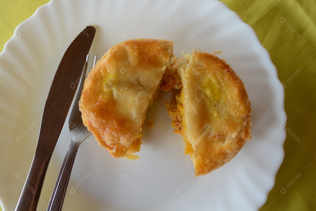 Deliciosas empadas gourmet sobre uma mesa de madeira