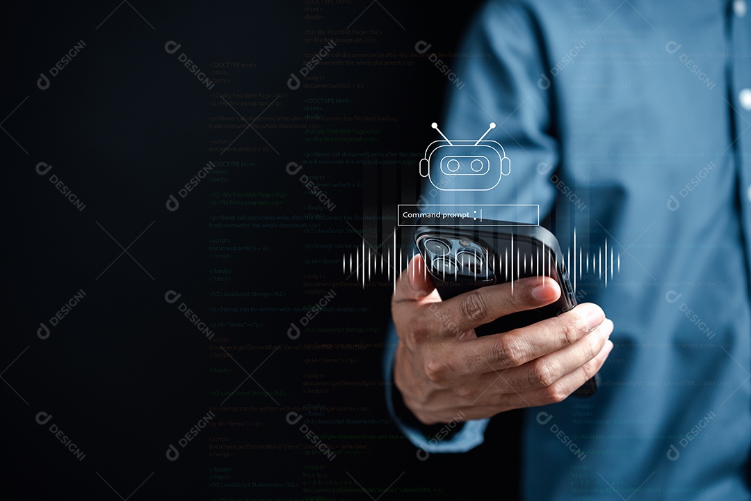 Inteligência de bot de bate-papo Ai. Empresário usando bate-papo