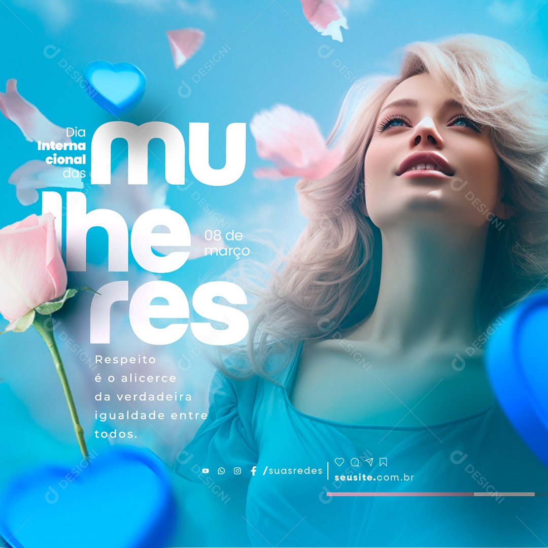 Dia Internacional das Mulheres 08 de Março Respeito é o alicerce Social Media PSD Editável