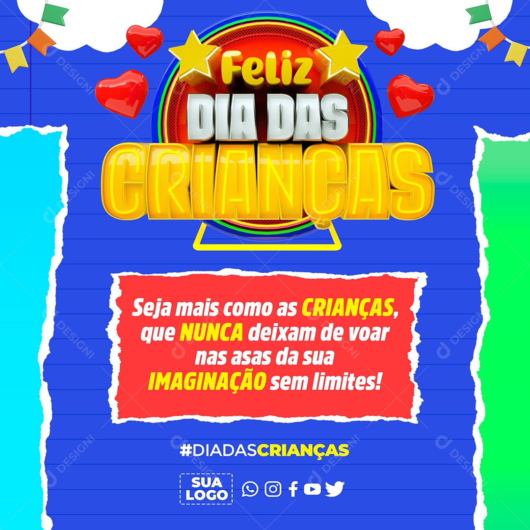 Feliz Dia das Crianças 12 de Outubro Nunca Deixe de Vooar nas Asas da sua Imaginação Social Media PSD Editável
